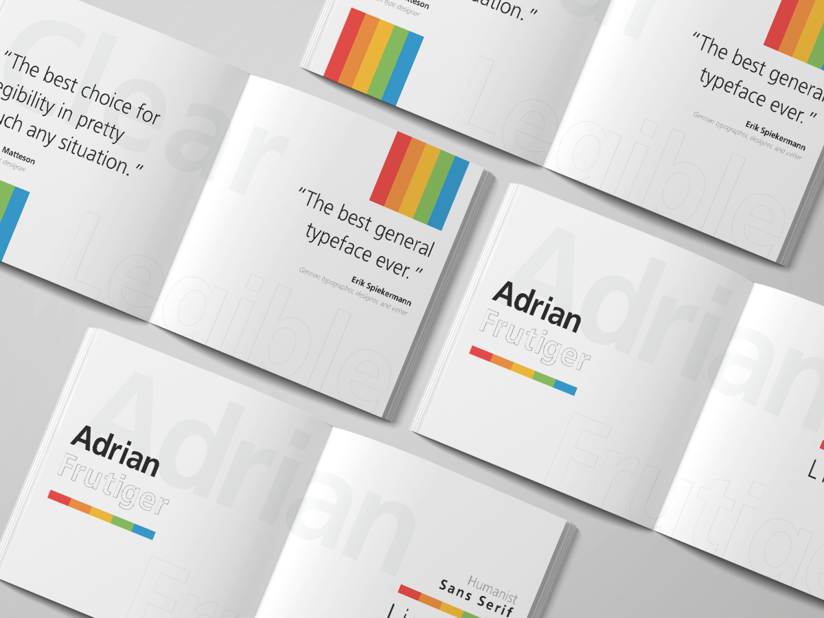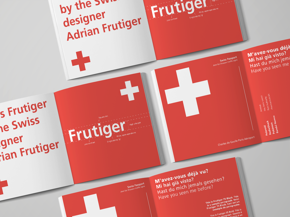 Swiss style: Reflecting Adrian Frutiger’s Swiss heritage and the principles of Swiss design.